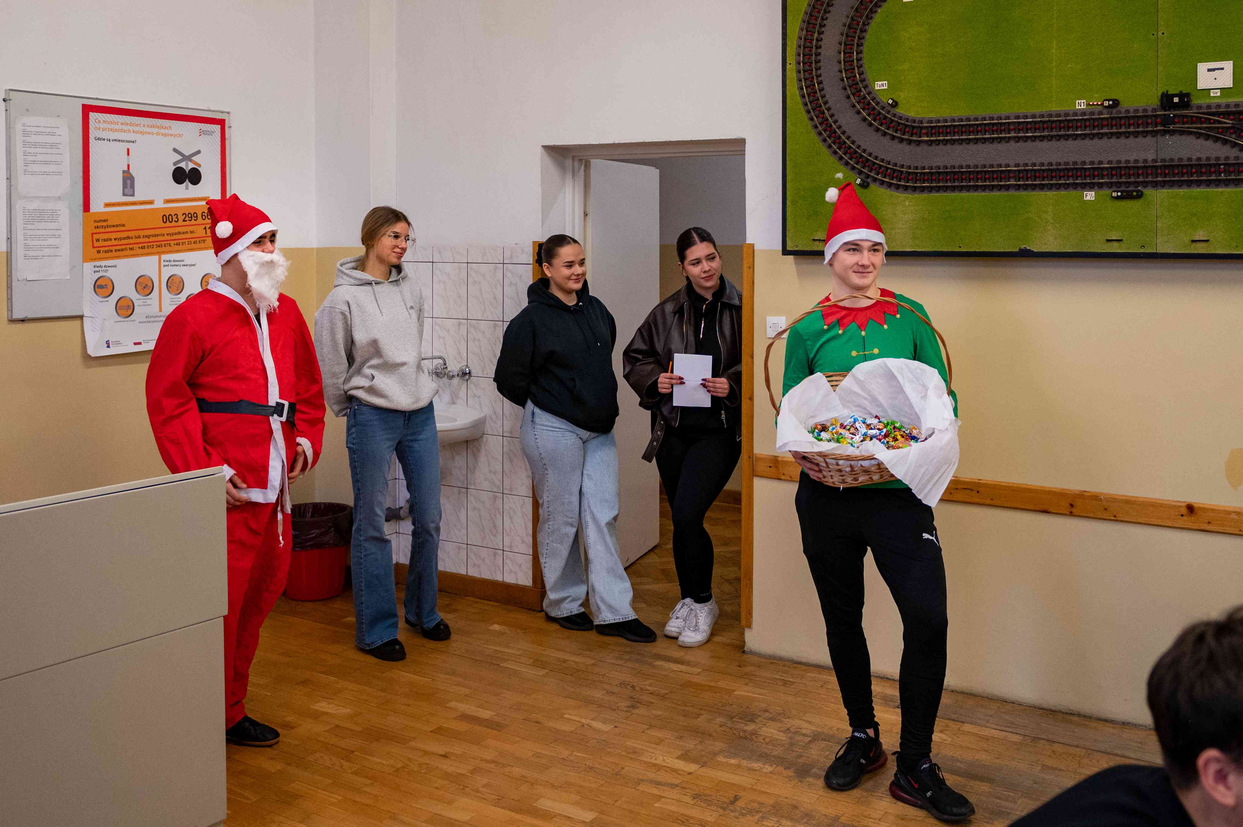 5 grudnia po korytarzach naszej szkoły przechadzał się PRAWDZIWY Święty Mikołaj! A towarzyszyli mu jego wierni pomocnicy – elf i uśmiechnięte śnieżynki.
