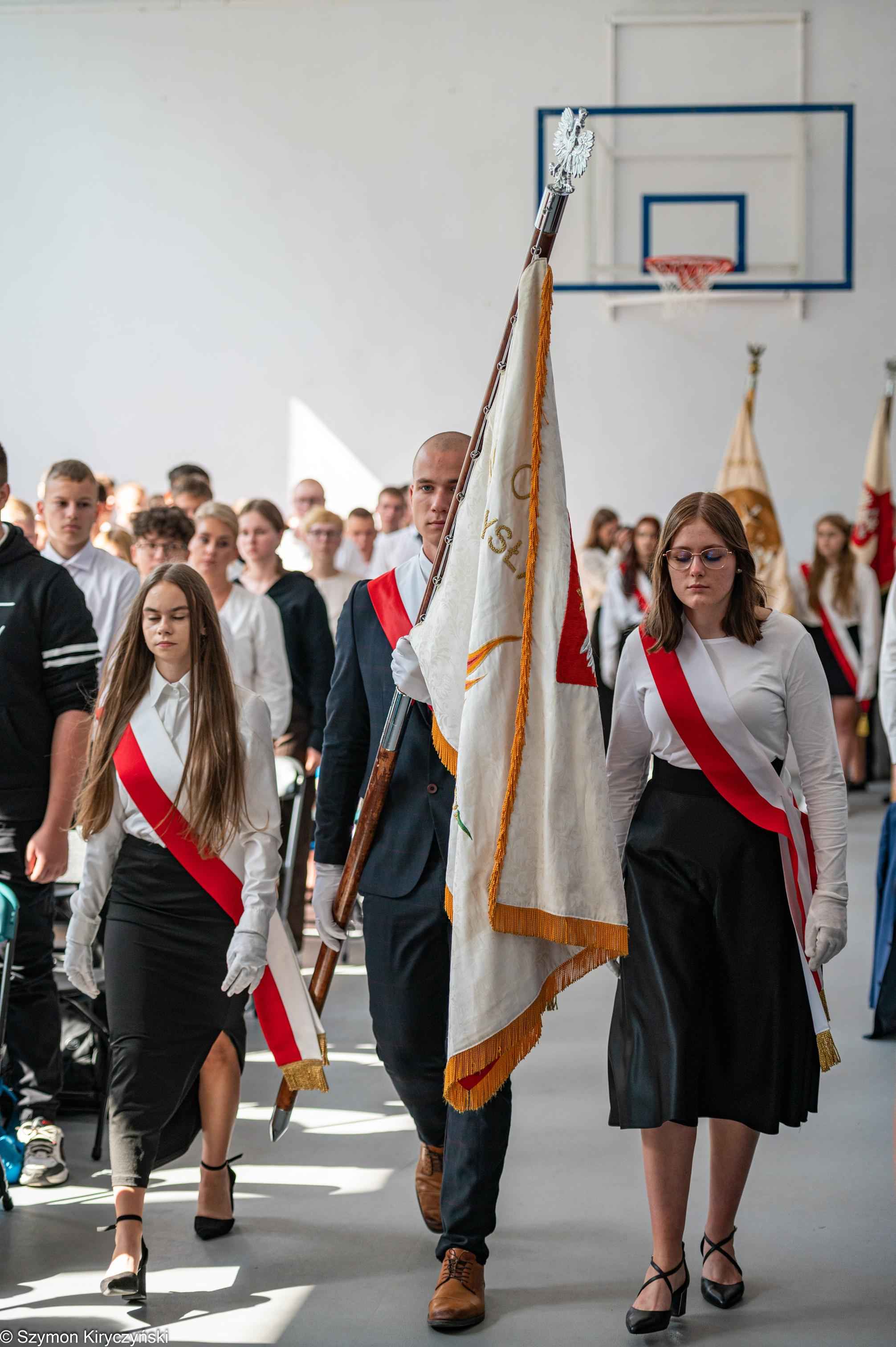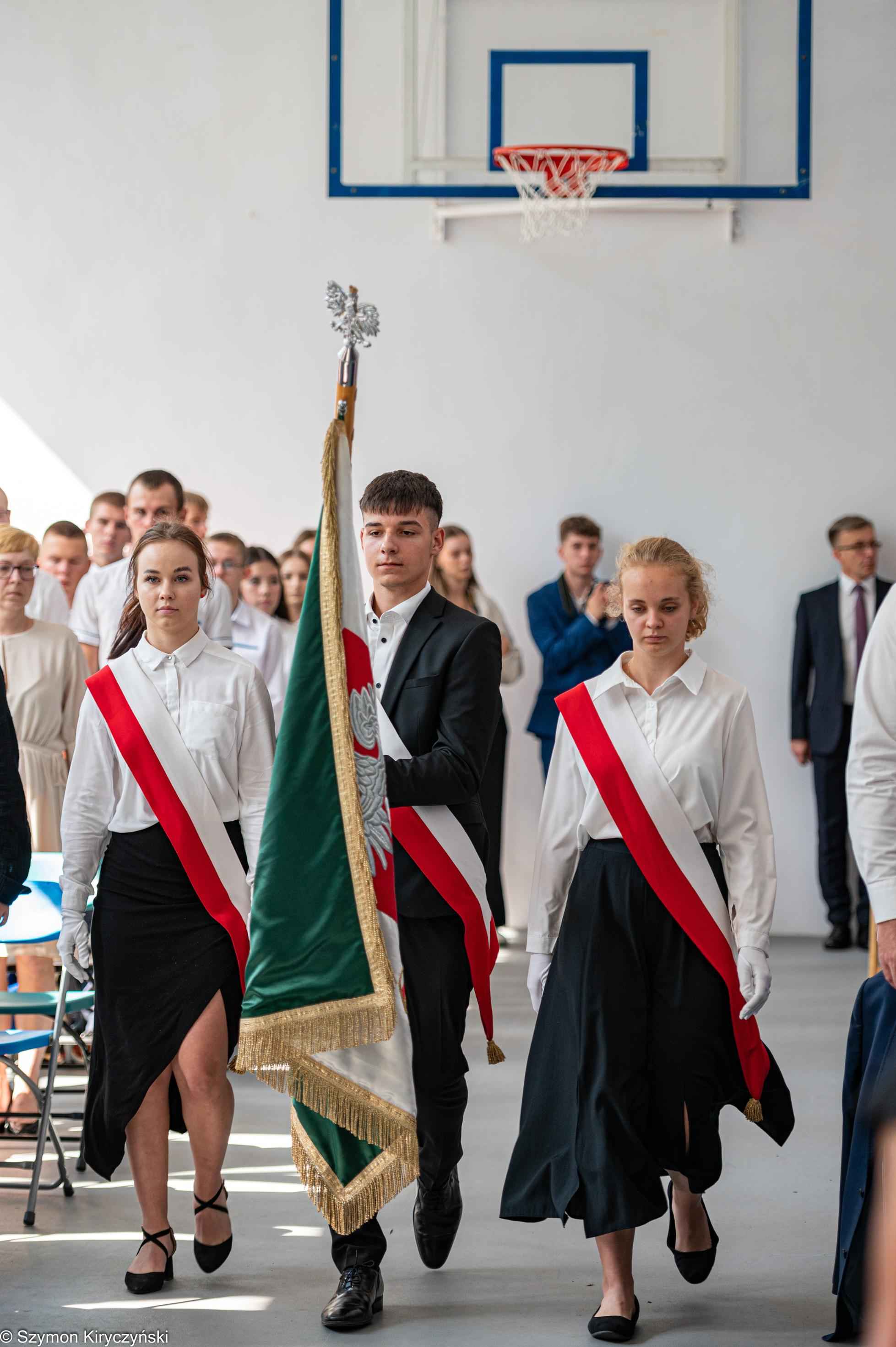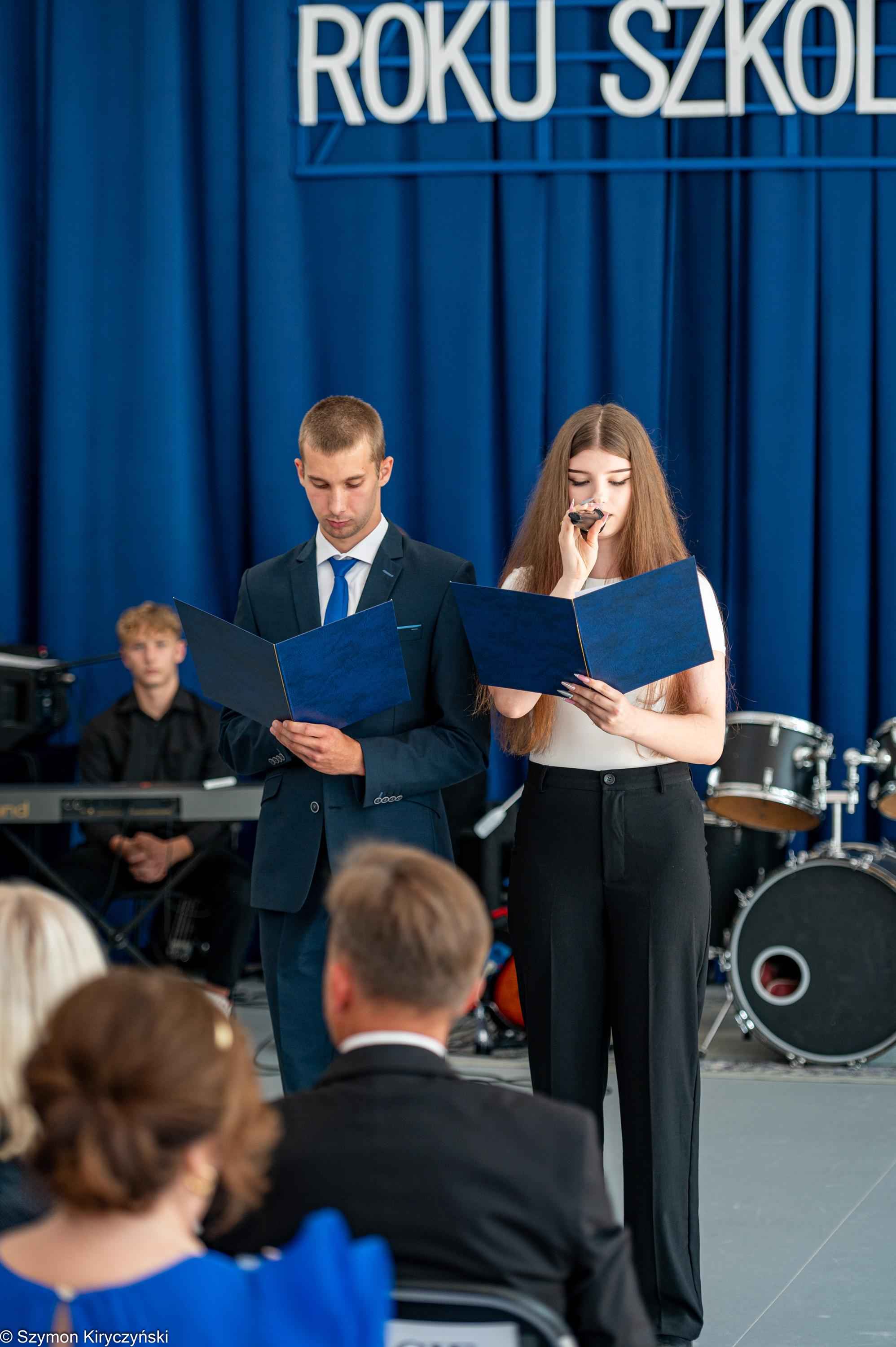 Na zakończenie prowadzący uroczystość: Amelia Kupryś i Szymon Kowaluk podziękowali wszystkim za uczestnictwo w inauguracji roku szkolnego 2025/2026. Życzyli wiele pomyślności i spełnienia marzenia, dumy i radości z osiągnięć w pracy zawodowej. Niech będzie to czas inspiracji i wspólnej podróży ku wiedzy.