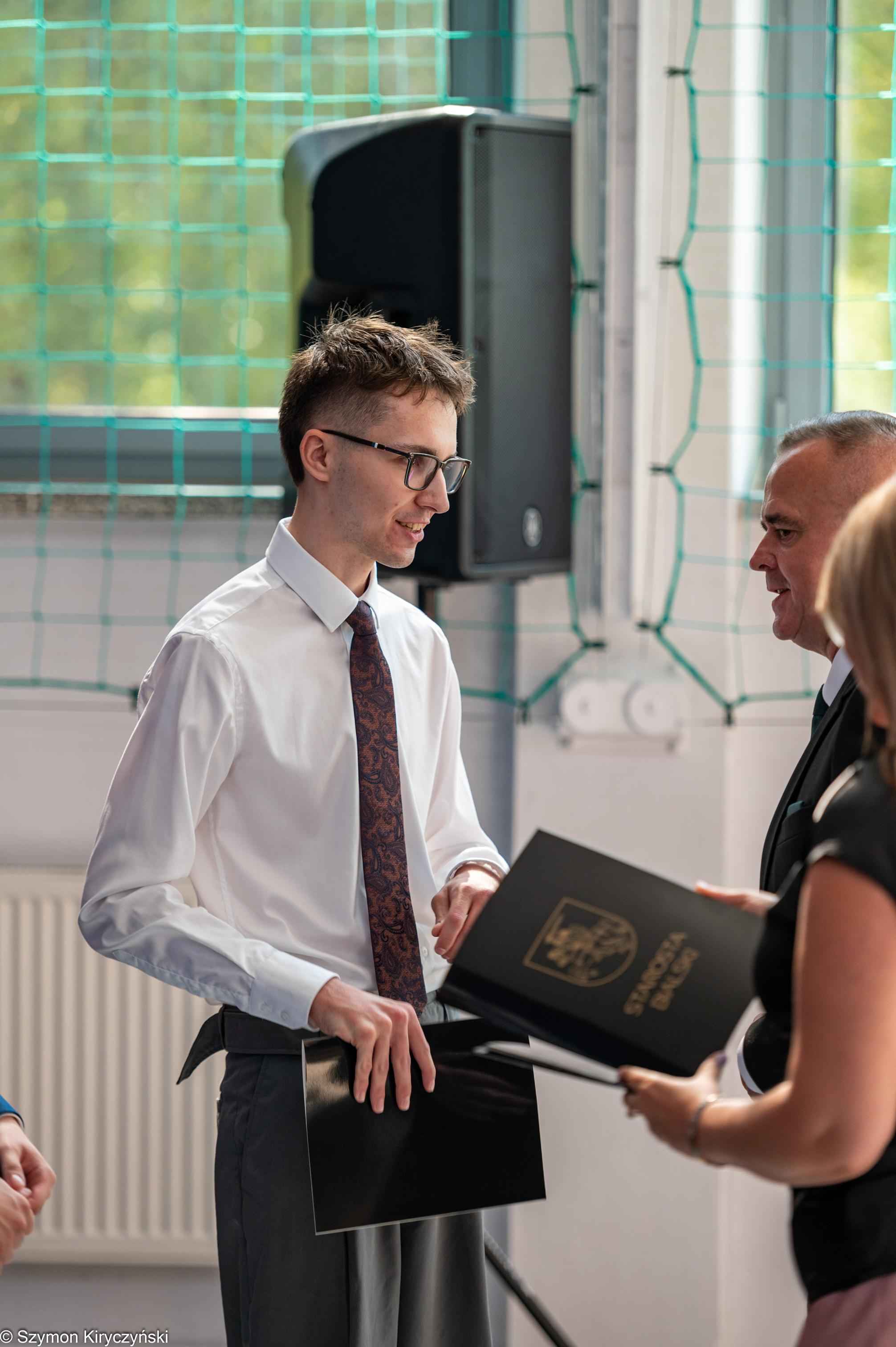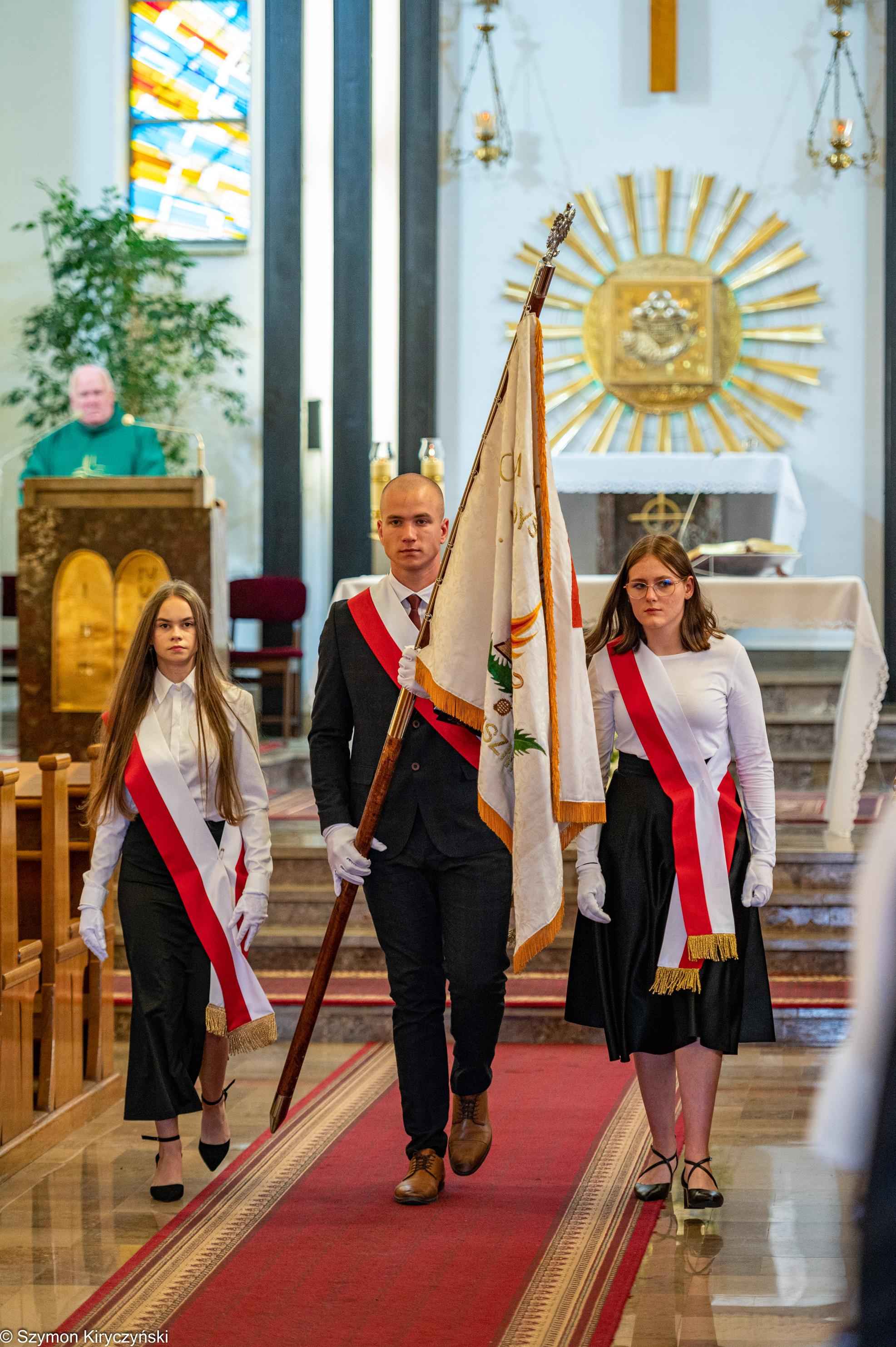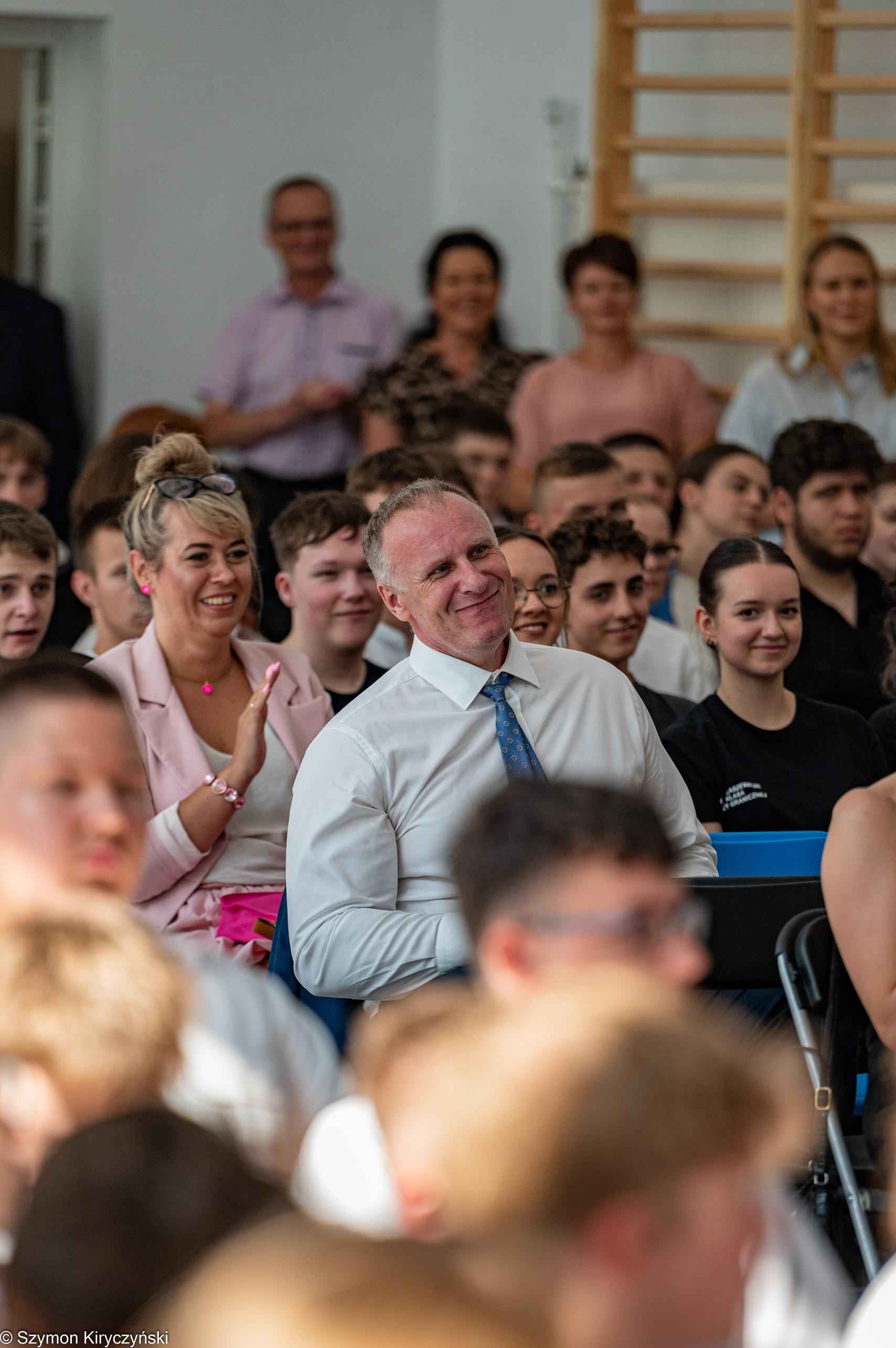Na zakończenie prowadzący uroczystość: Amelia Kupryś i Szymon Kowaluk podziękowali wszystkim za uczestnictwo w inauguracji roku szkolnego 2025/2026. Życzyli wiele pomyślności i spełnienia marzenia, dumy i radości z osiągnięć w pracy zawodowej. Niech będzie to czas inspiracji i wspólnej podróży ku wiedzy.