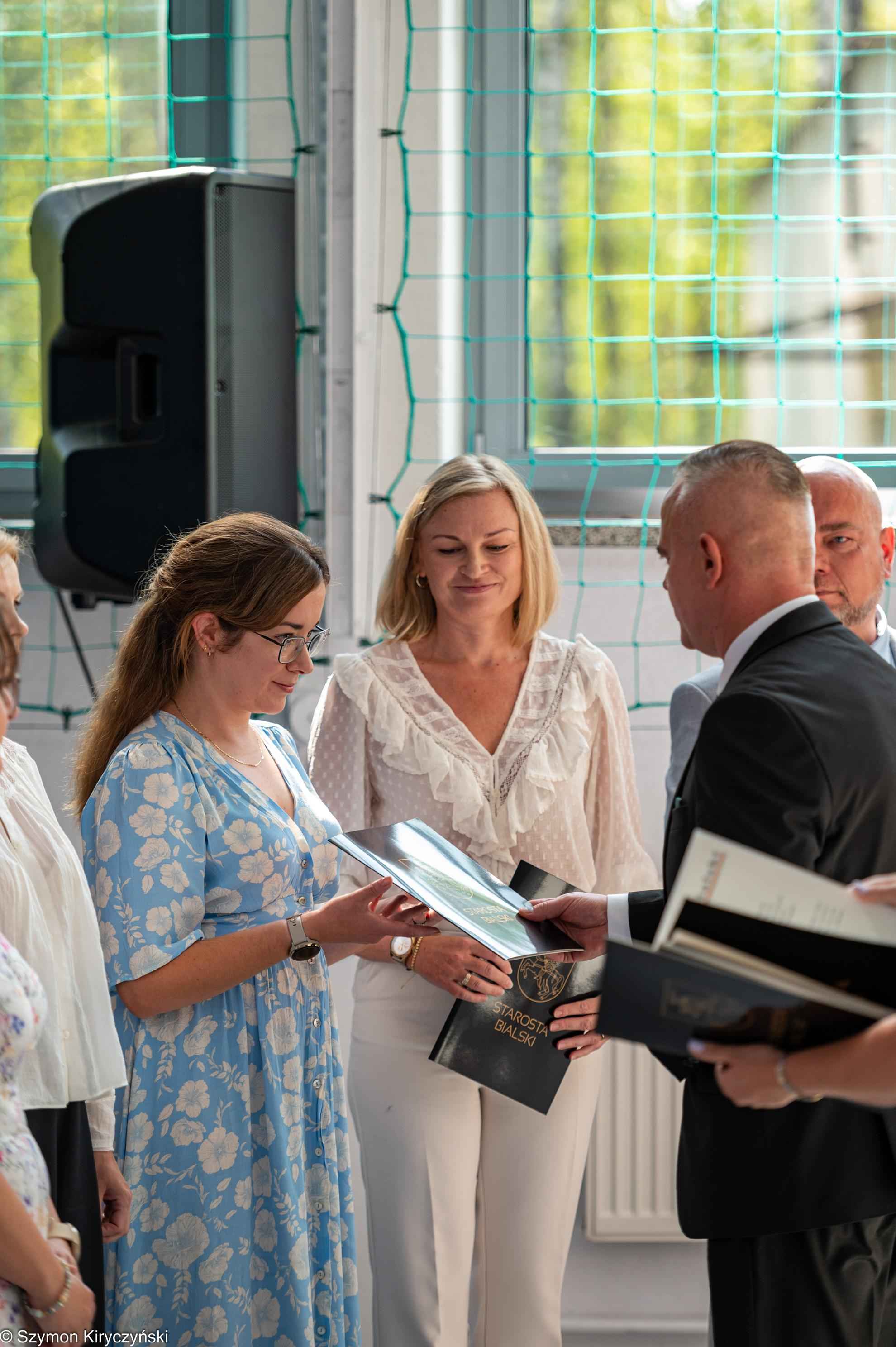 Gospodarzami uroczystości inaugurującej nowy roku szkolnego byli: pan Mariusz Filipiuk – Starosta Bialski i pan Robert Wieczorek – dyrektor Zespołu Szkół w Małaszewiczach. W swoich przemówieniach powitali uczestników spotkania i zwrócili się do społeczności szkolnych z powiatu bialskiego, życząc sukcesów, satysfakcji i radości z podejmowanych działań. Podczas uroczystości wręczone zostały akty nadania stopnia awansu zawodowego nauczyciela mianowanego. Starosta Bialski ufundował również stypendia najlepszym tegorocznym maturzystom ze szkół prowadzonych przez Powiat Bialski. Wśród wyróżnionych znalazły się dwie absolwentki Zespołu Szkół im. Wł. St. Reymonta w Małaszewiczach: Karolina Wieczorek i Izabela Marczak.
