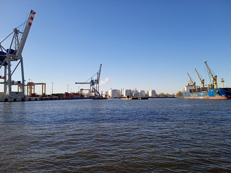 Praktyki rozpoczęliśmy w gmachu Zarządu Morskich Portów Szczecin i Świnoujście S.A., gdzie zostaliśmy miło przyjęci przez pracowników. Po poczęstunku uczniowie zostali zapoznani z prezentacją dotyczącą obszarów działalności portu w Szczecinie i Świnoujściu, strategii rozwoju – rozbudowa infrastruktury w celu przyjmowania coraz większych jednostek pływających, wdrażania nowych technologii dotyczących między innymi transportów intermodalnych w celu sprostania wymaganiom współczesnego transportu morskiego. Działalność portów to nie tylko obsługa ładunków masowych, drobnicowych, wielkogabarytowych i paliw płynnych, lecz także działalność związaną z obsługą ruchu pasażerskiego szczególnie w porcie Świnoujście. Po prezentacji przyszedł czas na zapoznanie się z portem. Bezpieczeństwo to rzecz nadrzędna, dlatego uczniowie i opiekunowie zostali wyposażeni w kamizelki odblaskowe.