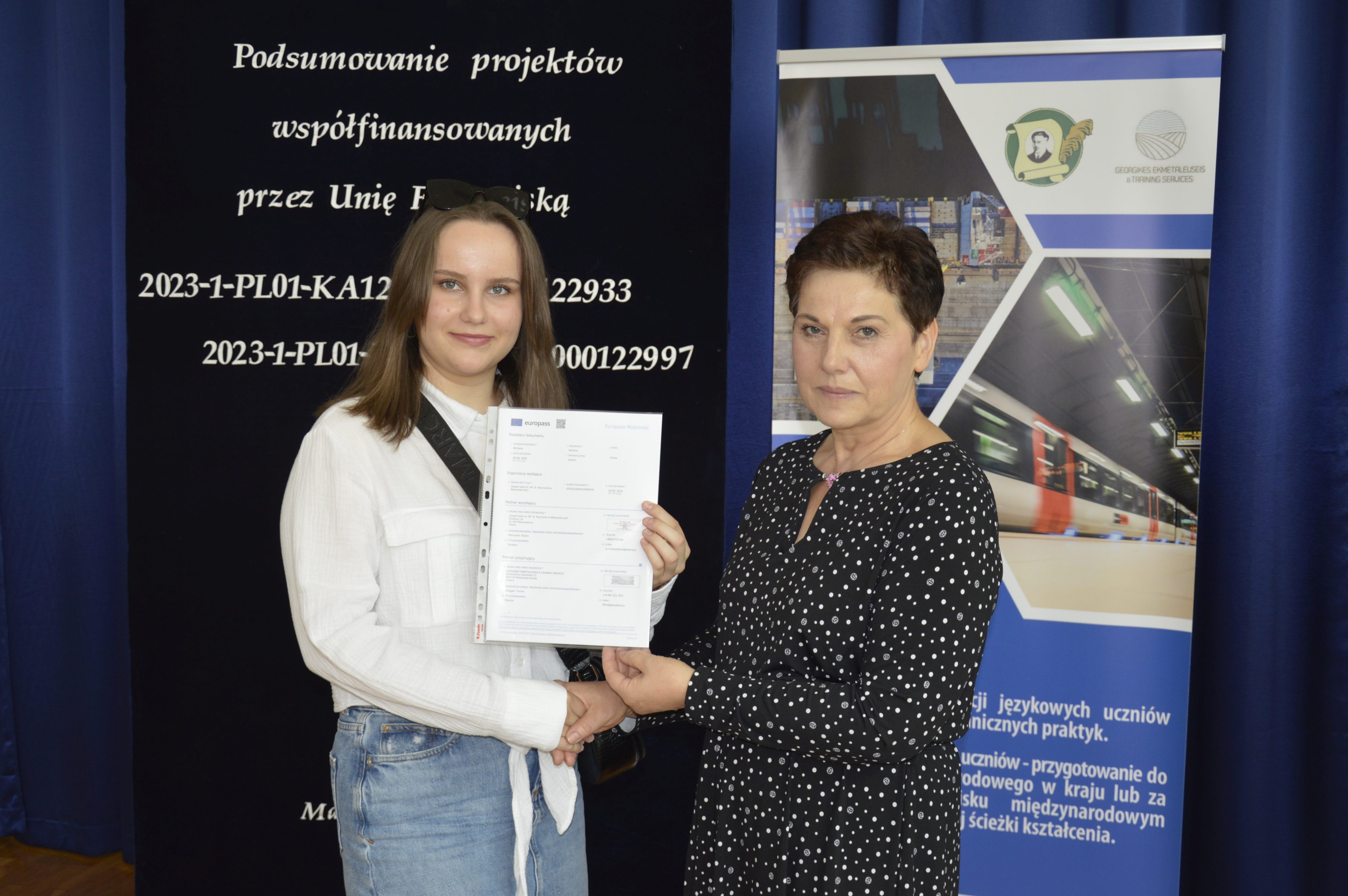 Zarówno zajęcia kulturowo-językowe licealistów, jak i staże młodych techników oraz szkolenia kadry były bardzo wartościowe, ponieważ dostarczyły wielu pozytywnych wrażeń i nowych doświadczeń – o czym wspominano na podsumowaniu obu wyjazdów, które miało miejsce 21 czerwca 2024 r. Na spotkaniu tym uczniowie jeszcze raz podzielili się przeżyciami, pochwalili osiągnięciami oraz powrócili myślami do tych wspaniałych chwil i przygód. Dokonali także ewaluacji projektów. Na zakończenie Pani Wicedyrektor Jolanta Wałach wręczyła młodzieży certyfikaty oraz dokumenty Europass potwierdzające odbycie zagranicznych wyjazdów i staży. Europass to obecnie bardzo ważny dokument o znaczeniu międzynarodowym, a łącznie z certyfikatem jest czytelnym i przejrzystym poświadczeniem zdobytych umiejętności i kompetencji we wszystkich krajach Unii Europejskiej.