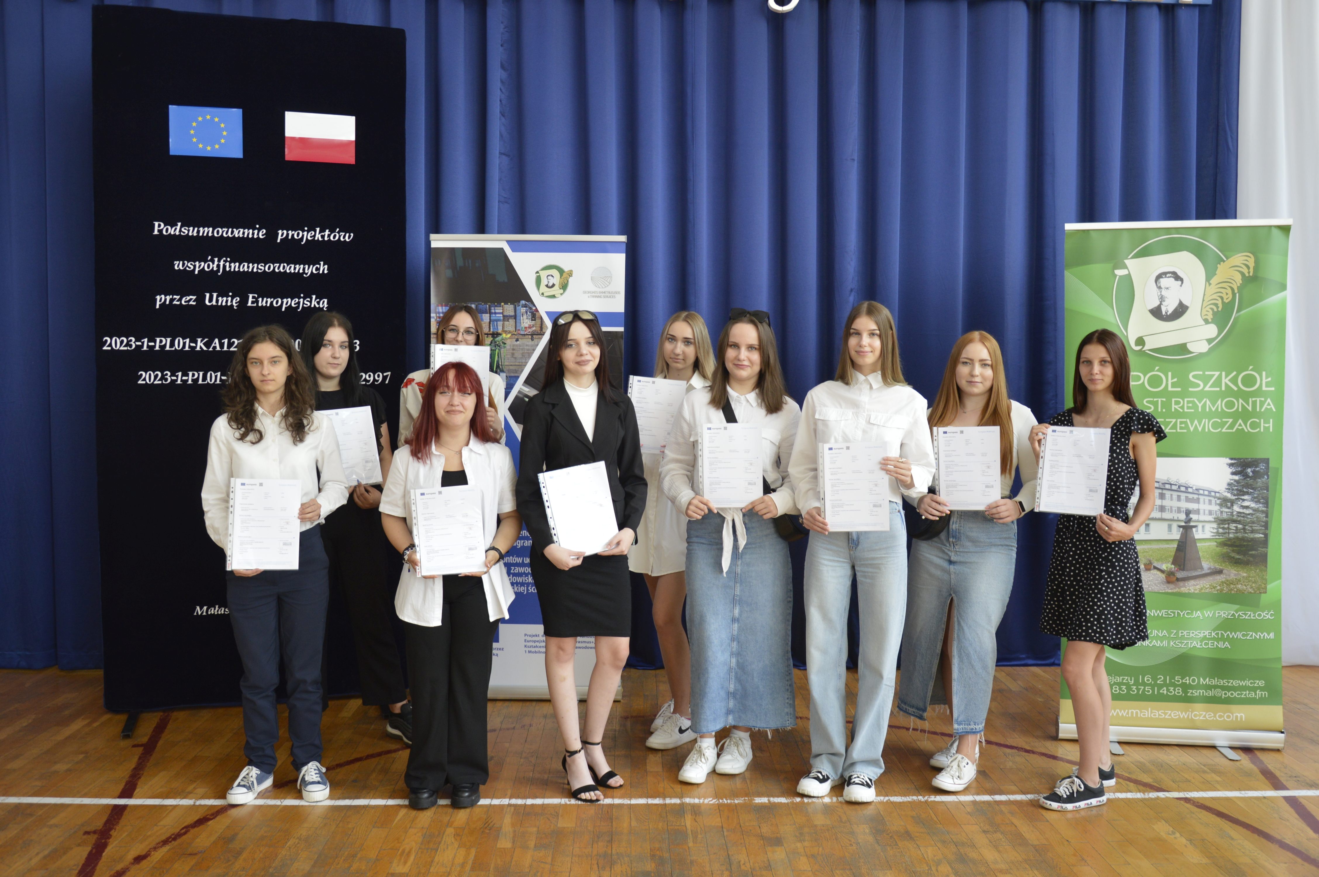 Na przełomie kwietnia i maja 2024 roku uczniowie technikum, liceum oraz nauczyciele Zespołu Szkół im. Wł. St. Reymonta w Małaszewiczach uczestniczyli w zagranicznych wyjazdach kulturowych, lingwistycznych oraz w stażach i praktykach zawodowych. 21 czerwca tuż po uroczystości zakończenia roku szkolnego 2023/2024 miało miejsce uroczyste podsumowanie projektów, w ramach których odbyły się te wyjazdy.