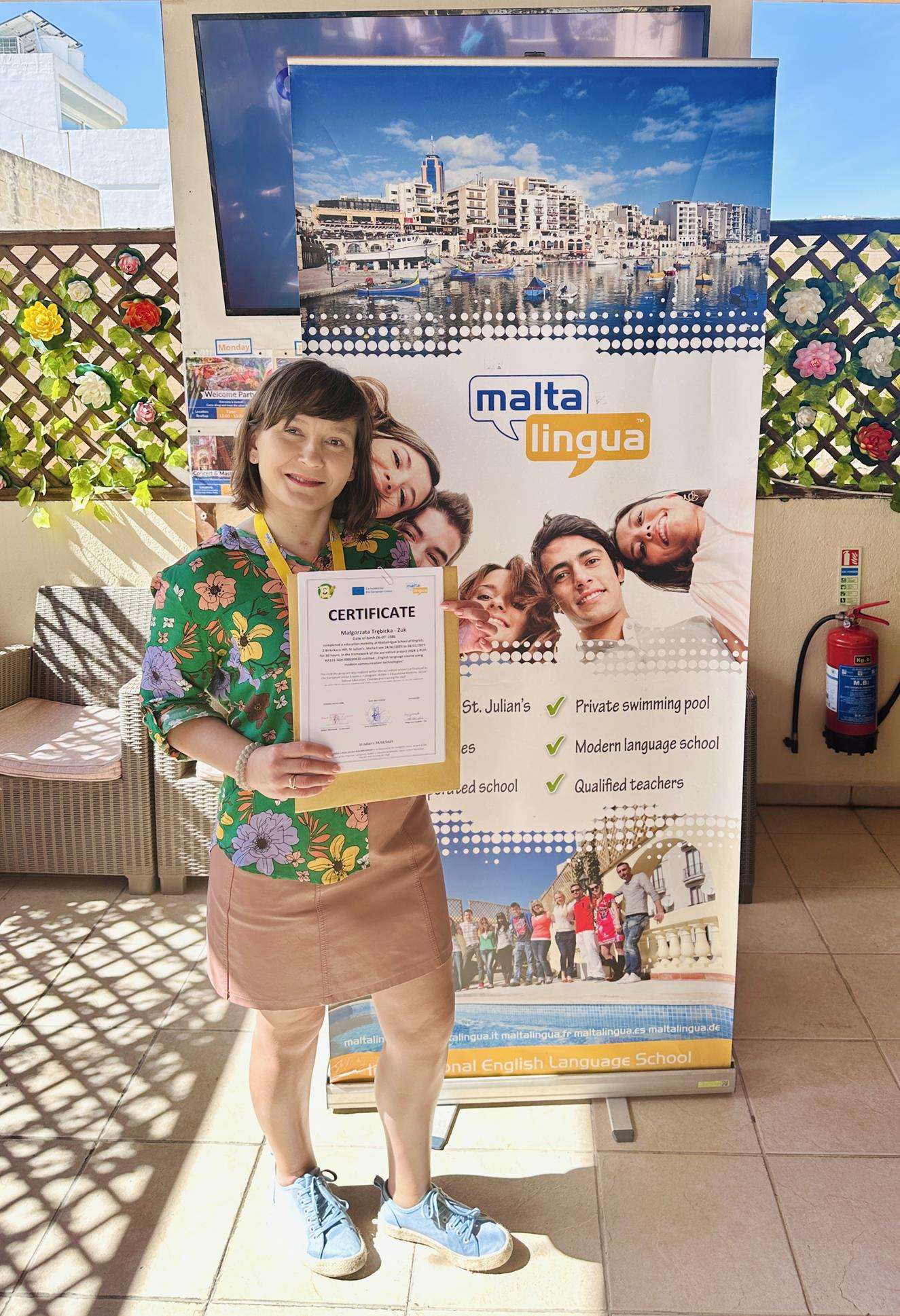 Malta to nie tylko wakacyjny raj, ale także – z racji tego, że jest to dawna kolonia brytyjska – jest to jedno z najpopularniejszych i najlepszych miejsc w Europie do nauki języka angielskiego. Nic dziwnego, że właśnie tam trzy panie z naszej szkoły realizowały projekt nr 2024-1-PL01-KA121-SCH-000209630, który jest dofinansowany w ramach akredytacji z funduszy Unii Europejskiej, z programu Erasmus+, Akcja 1 Mobilność Edukacyjna, sektor Edukacja Szkolna, Kursy i Szkolenia Kadry. W ramach projektu panie: Marta Winiarek-Pomorska, Katarzyna Caban i Małgorzata Trębicka-Żuk odbyły intensywny tygodniowy kurs językowy, w ramach którego podniosły swoje umiejętności porozumiewania się w języku angielskim. Szkolenie obejmowało szereg zajęć z gramatyki i konwersacji, które odbywało się w renomowanej szkole językowej Maltalingua English Language School w miejscowości St. Julian’s. Zajęcia były prowadzone przez native speakerów i dostosowane do poziomu uczestników. To czego uczestniczki kursu nauczyły się w trakcje lekcji, mogły utrwalić podczas zwiedzania tej pięknej wyspy. Spacerując malowniczymi uliczkami maltańskich miasteczek, kupując świeże produkty na lokalnym targu, czy zamawiając tradycyjne maltańskie dania, nauczycielki miały okazję doskonalić język w codziennych sytuacjach.