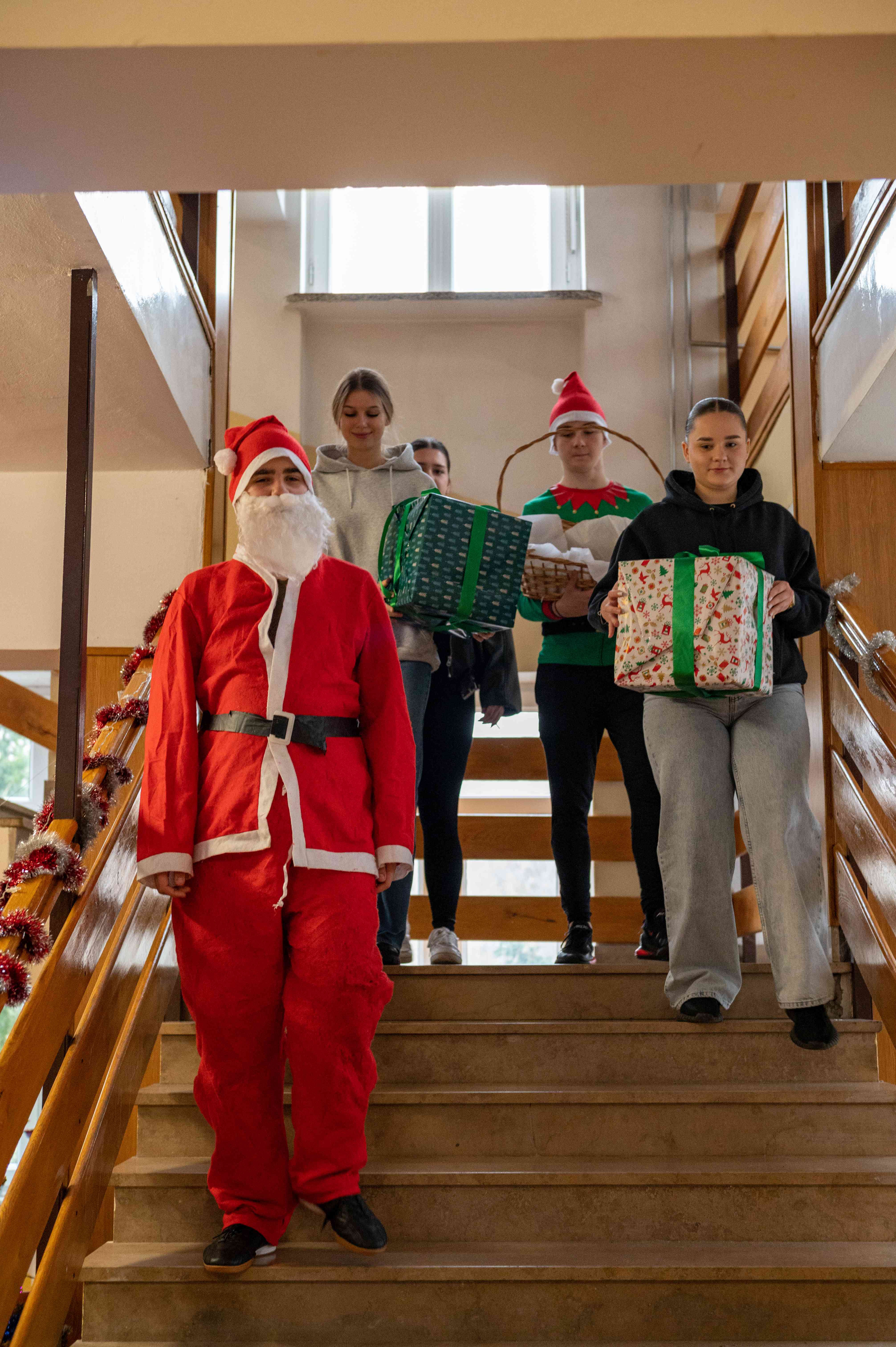 5 grudnia po korytarzach naszej szkoły przechadzał się PRAWDZIWY Święty Mikołaj! A towarzyszyli mu jego wierni pomocnicy – elf i uśmiechnięte śnieżynki.