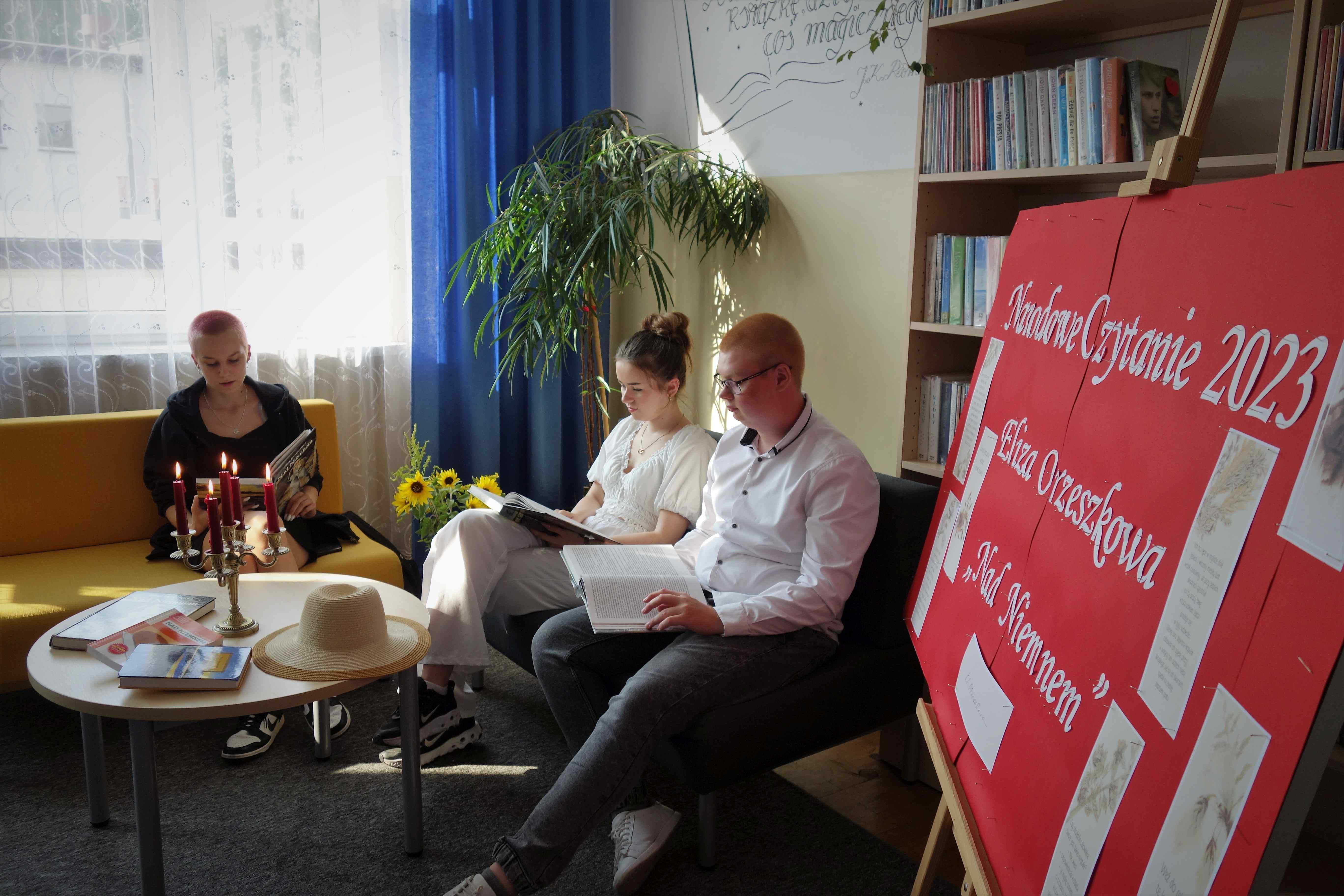 12 września po raz kolejny nasza szkoła wzięła udział w akcji Narodowego Czytania. Tym razem wspólnie oddaliśmy się lekturze „Nad Niemnem” Elizy Orzeszkowej. Ta nastrojowa, napisana barwnym językiem powieść przybliżyła nam folklor i szlacheckie zwyczaje, a także tematykę powstań narodowych Spotkanie rozpoczęło się od przedstawienia idei akcji Narodowego Czytania i odczytania fragmentu listu Prezydenta Polski. W tym roku prozę czytali: Magdalena Kusy kl. 4B, Agnieszka Jarzyna kl. 5DI oraz Adam Ojer z kl. 2D.