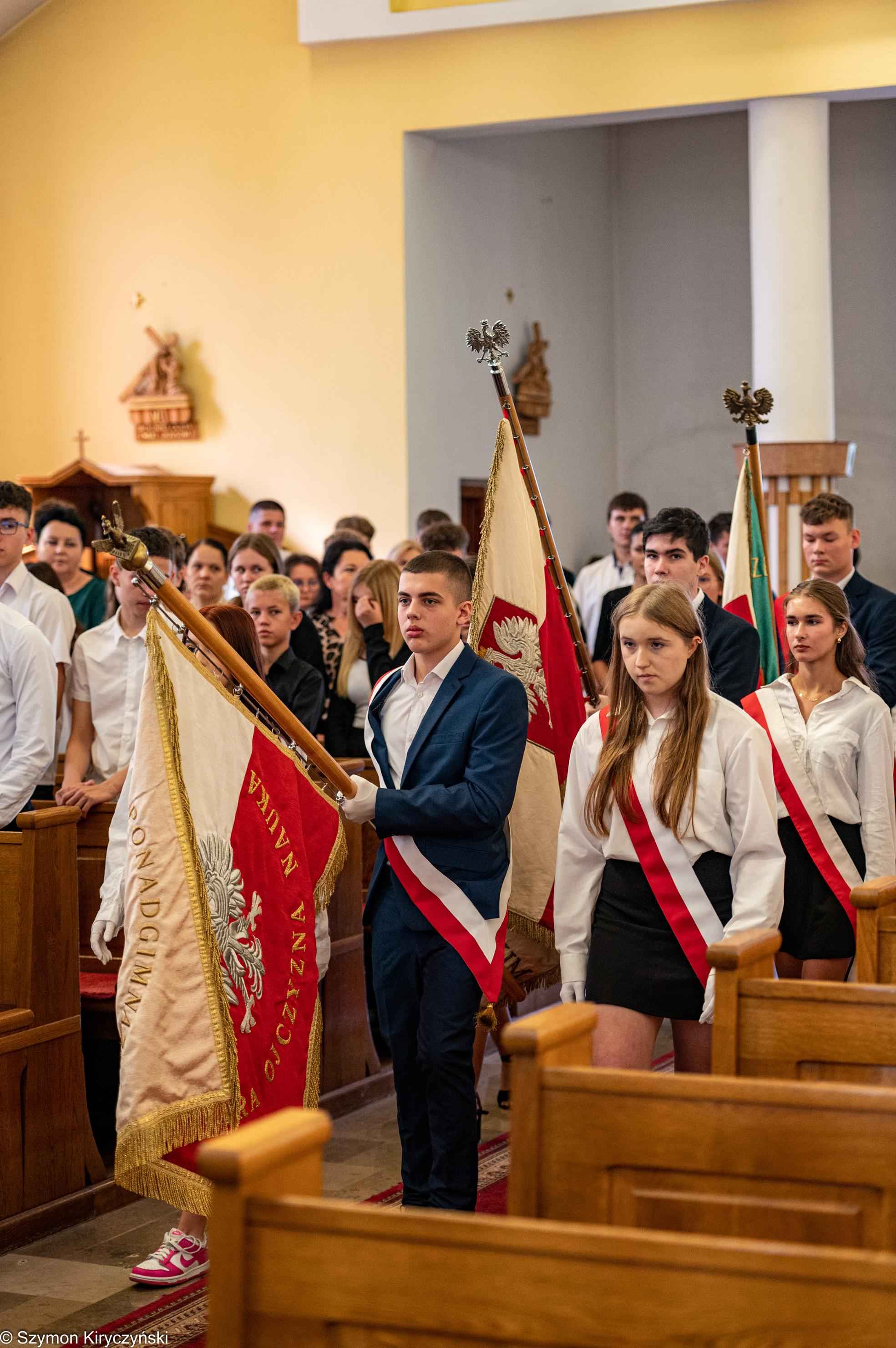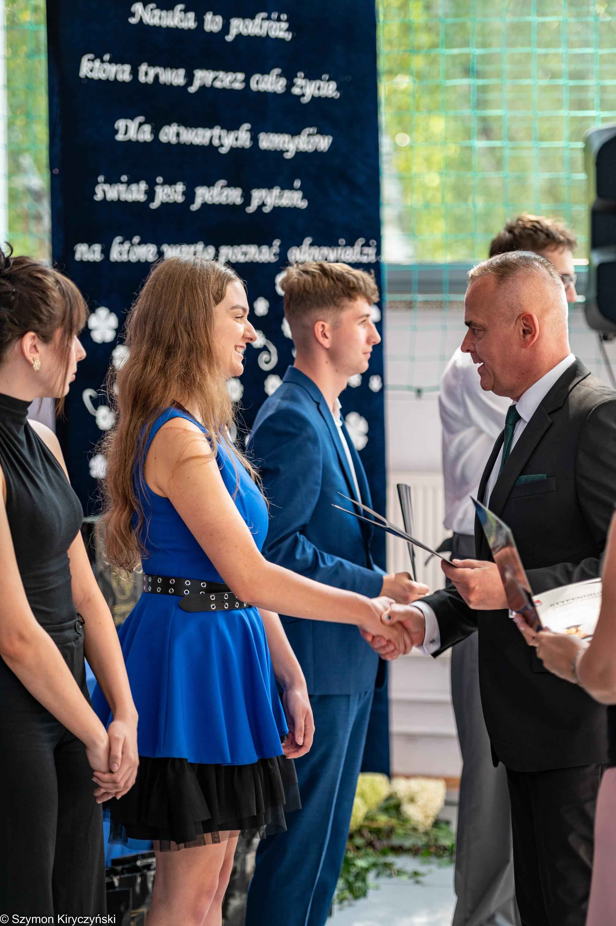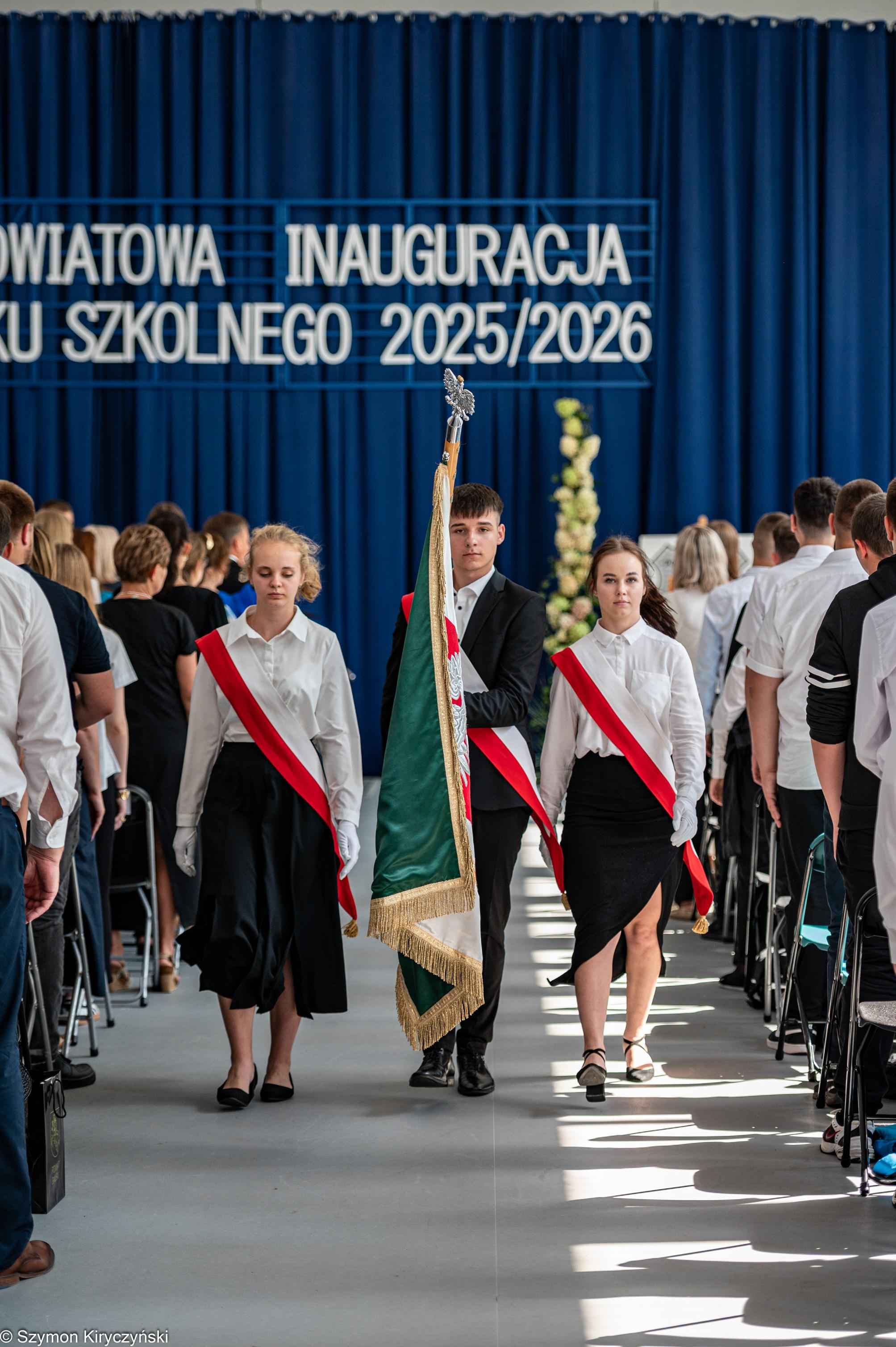Na zakończenie prowadzący uroczystość: Amelia Kupryś i Szymon Kowaluk podziękowali wszystkim za uczestnictwo w inauguracji roku szkolnego 2025/2026. Życzyli wiele pomyślności i spełnienia marzenia, dumy i radości z osiągnięć w pracy zawodowej. Niech będzie to czas inspiracji i wspólnej podróży ku wiedzy.