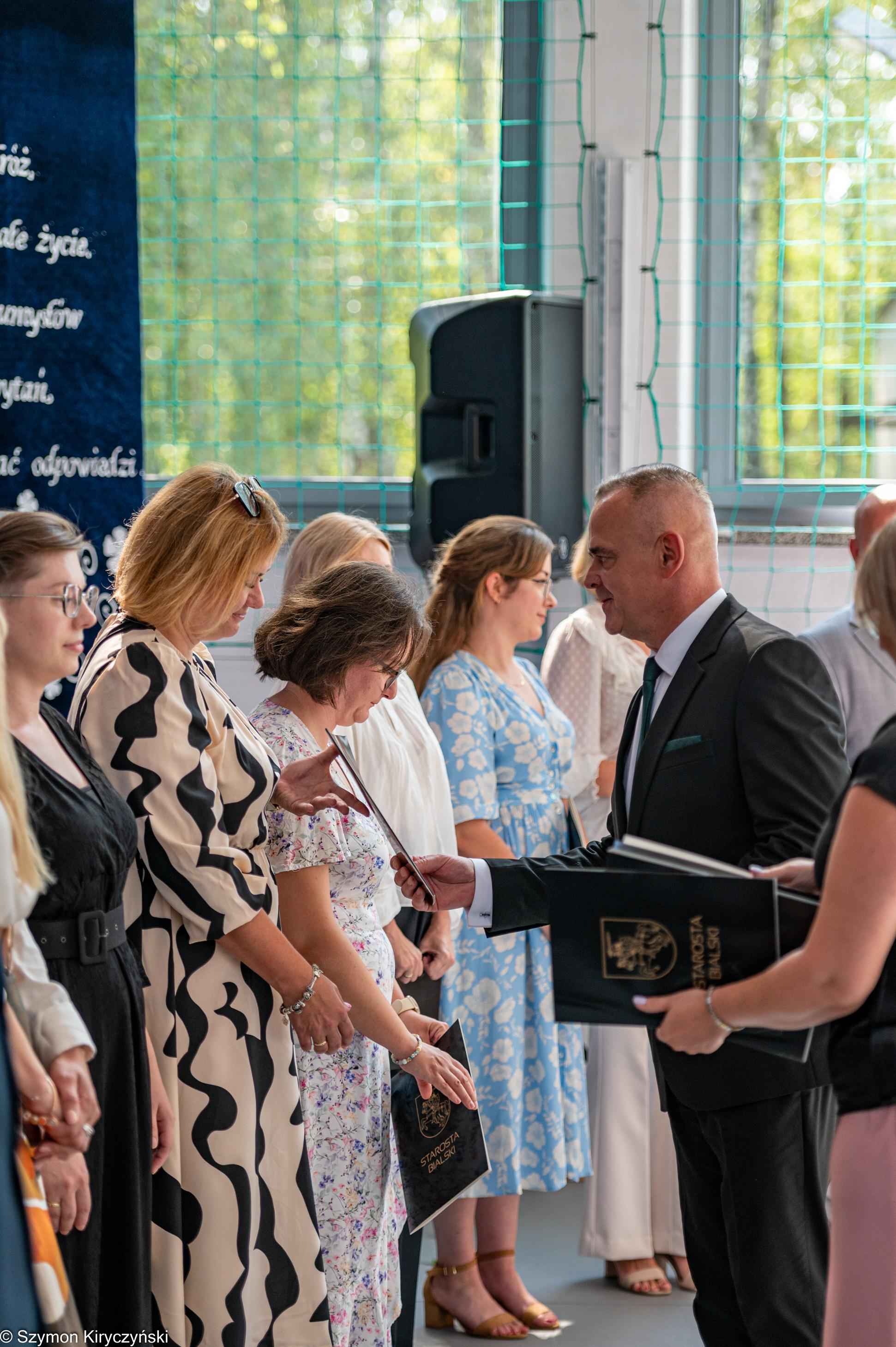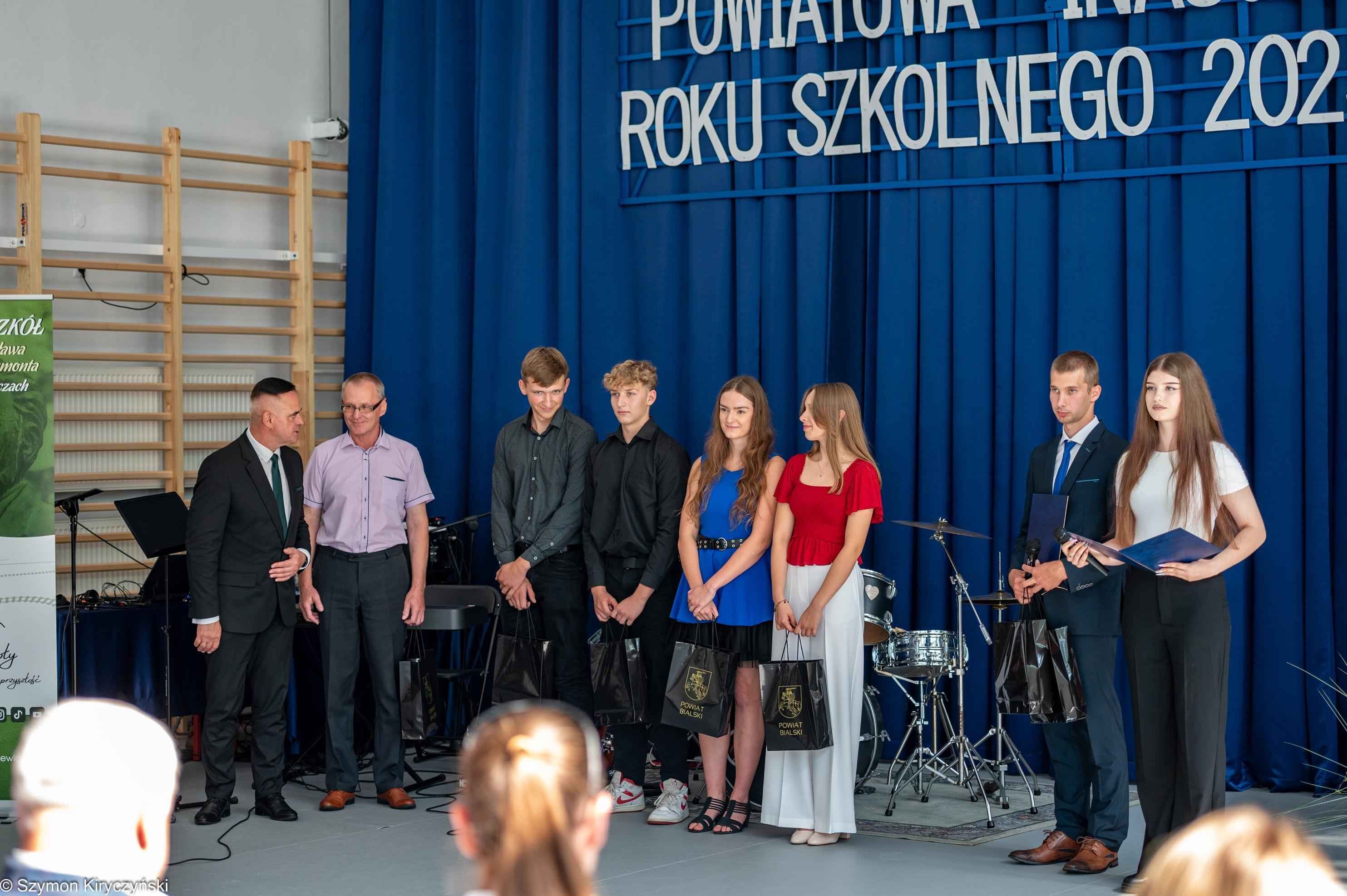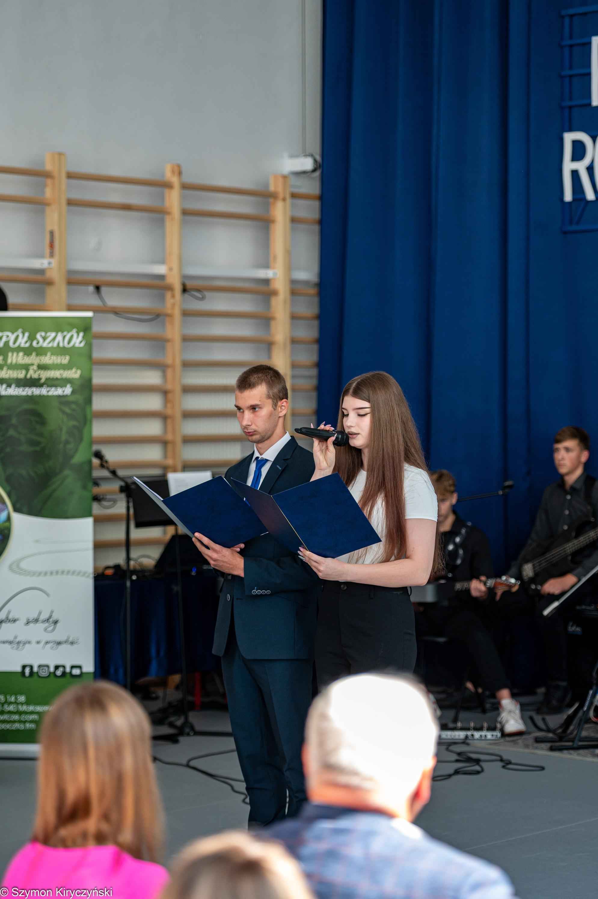 Gospodarzami uroczystości inaugurującej nowy roku szkolnego byli: pan Mariusz Filipiuk – Starosta Bialski i pan Robert Wieczorek – dyrektor Zespołu Szkół w Małaszewiczach. W swoich przemówieniach powitali uczestników spotkania i zwrócili się do społeczności szkolnych z powiatu bialskiego, życząc sukcesów, satysfakcji i radości z podejmowanych działań. Podczas uroczystości wręczone zostały akty nadania stopnia awansu zawodowego nauczyciela mianowanego. Starosta Bialski ufundował również stypendia najlepszym tegorocznym maturzystom ze szkół prowadzonych przez Powiat Bialski. Wśród wyróżnionych znalazły się dwie absolwentki Zespołu Szkół im. Wł. St. Reymonta w Małaszewiczach: Karolina Wieczorek i Izabela Marczak.
