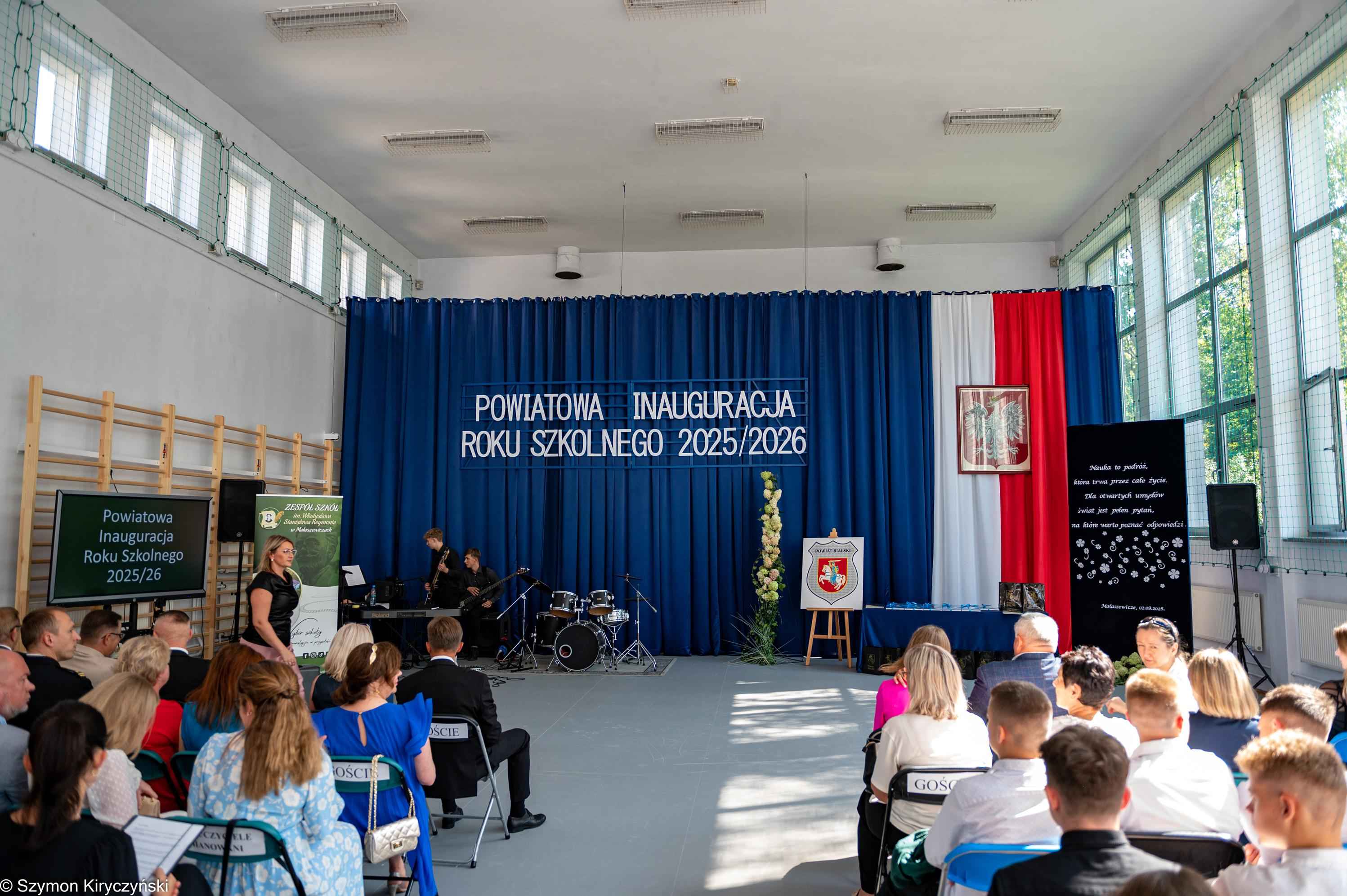 W Zespole Szkół im. Wł. St. Reymonta w Małaszewiczach odbyła się Powiatowa Inauguracja Roku Szkolnego 2025/2026. W wydarzeniu wzięli udział przedstawiciele władz samorządowych, lokalnych oraz środowiska oświatowego. Uroczystość rozpoczęła msza św. w kościele parafialnym pw. św. Katarzyny Aleksandryjskiej, a po jej zakończeniu wszyscy uczestnicy z pocztami sztandarowymi szkół z powiatu bialskiego na czele przemaszerowali do budynku. szkoły. Tam odbyła się część oficjalna, którą rozpoczął Bartłomiej Bielak solówką „The Best of Times” na gitarze. Aby pozostać w klimacie wakacyjnych wspomnień, zgromadzeni obejrzeli duet tańca współczesnego w wykonaniu Małgorzaty Wasiluk i Karoliny Wieczorek – laureatek XVIII Otwartego Przeglądu Zespołów Tanecznych „LOVE TO DANCE” o Puchar Starosty Bialskiego w Terespolu./