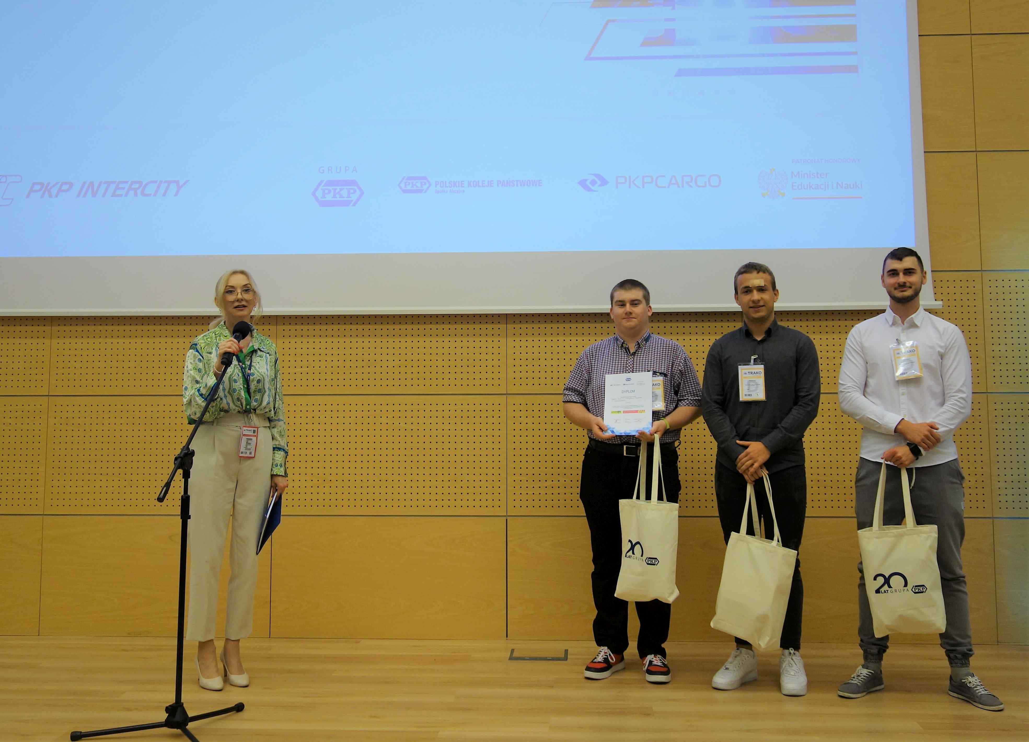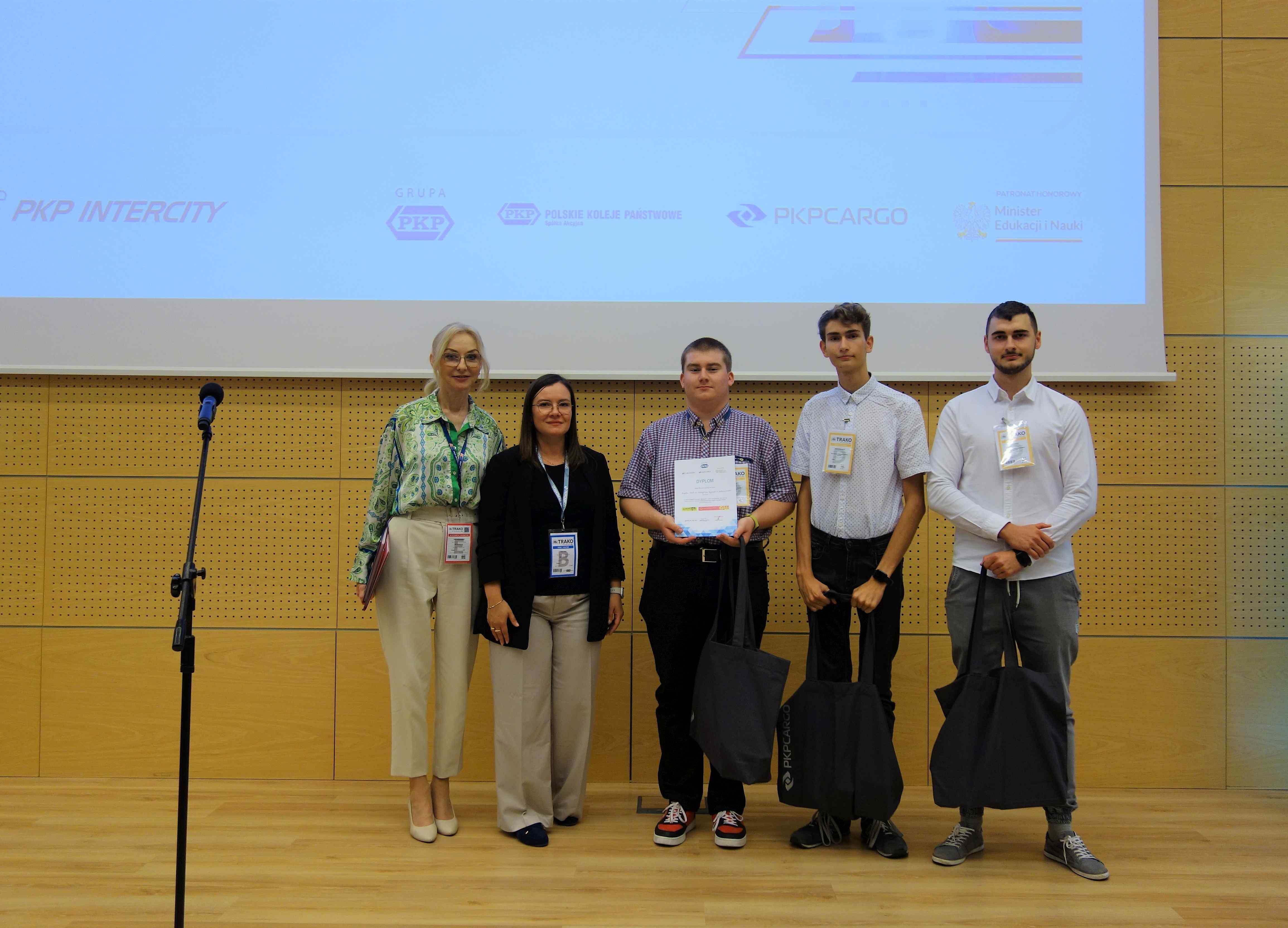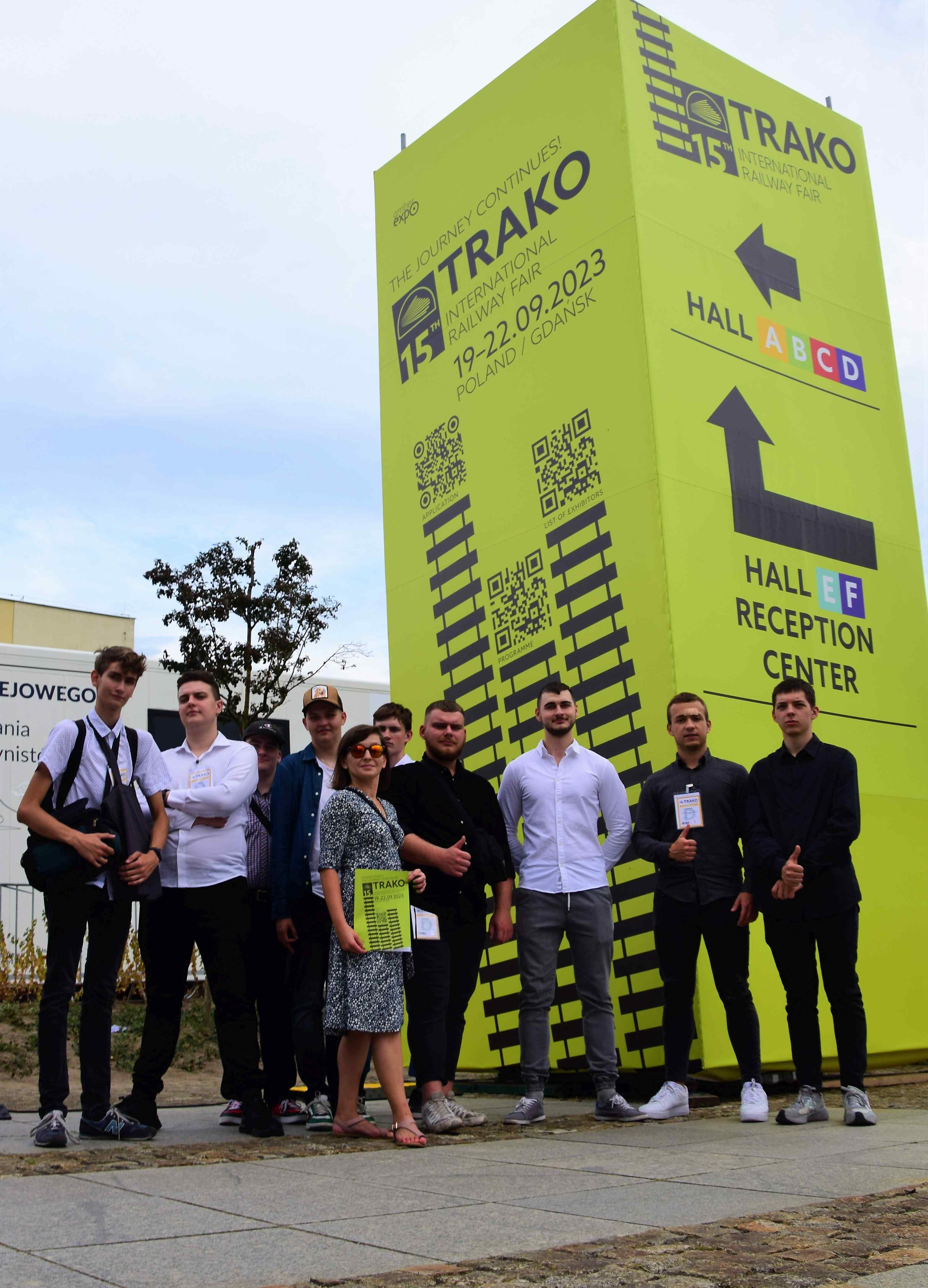 W dniach 21-22 września dziewięciu uczniów naszej szkoły uczestniczyło w jednym z najważniejszych wydarzeń branży kolejowej, czyli w 15. Międzynarodowych Targach Kolejowych TRAKO 2023! Jest to cykliczna impreza dedykowana instytucjom, pracownikom, a także kandydatom do pracy na kolei, w tym także i uczniom oraz studentom kierunków kolejowych. Z tego powodu ostatni dzień targowy od kilku lat jest Dniem Edukacji i Kariery. Nasi uczniowie nie mogli zatem nie pojawić się na tej znakomitej branżowej imprezie. Pod opieką Pani Małgorzaty Trębickiej-Żuk wybrali się na to wydarzenie aż do Gdańska. Godne uwagi jest to, że wzięli udział w krajowych – ogólnopolskich drużynowych konkursach umiejętności i wiedzy kolejowej, a dokładniej w konkursach: „Maszynista – zawód z przyszłością” oraz „Transport kolejowy moją pasją”. I stała się rzecz absolutnie niesamowita! Absolutnie bez precedensu! Nasze drużyny okazały się… absolutnie bezkonkurencyjne! Szczególnie Jakub Chwesiuk (V DC), Dariusz Mincewicz (V DI) oraz Bartłomiej Zajko (V DC), którzy w konkursie „Transport kolejowy moją pasją” w doskonałym stylu zajęli 1. miejsce, pokonując jednocześnie drużyny z 17. innych szkół kolejowych z całej Polski!
