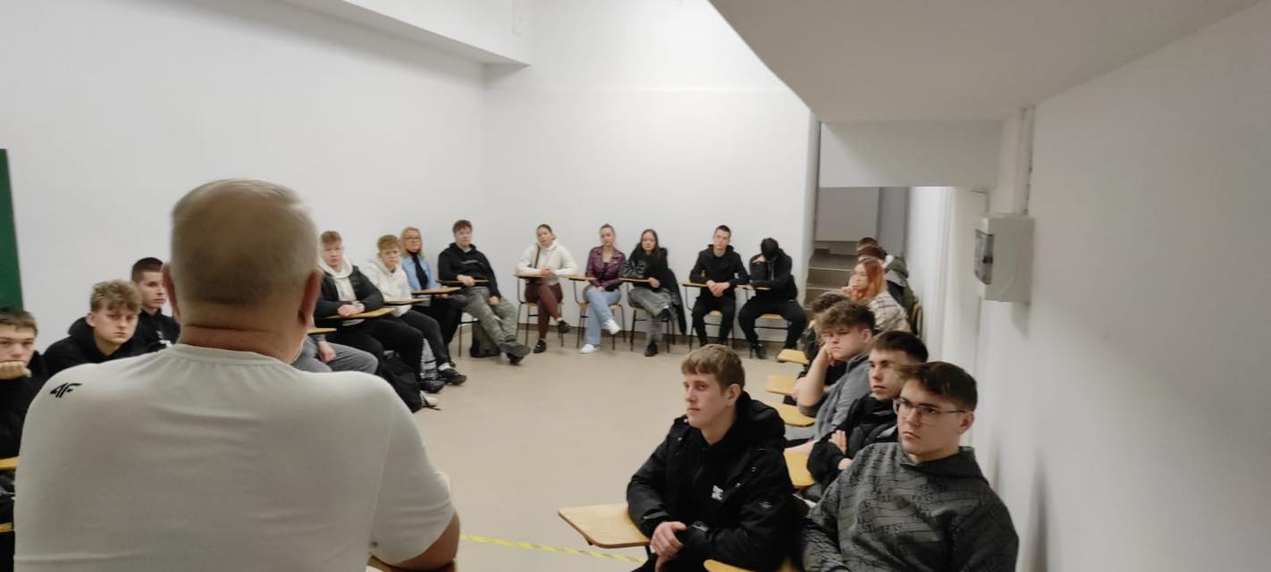 Na początku młodzież spotkała się z funkcjonariuszem - panem Wojtkiem i jego czworonożnym przyjacielem i podopiecznym – Nixonem – psem wyszkolonym do wykrywania niedozwolonych substancji. Pokaz umiejętności psa zrobił na zgromadzonych ogromne wrażenie. Przewodnik wyjaśnił, jak ważną rolę odgrywają zwierzęta w utrzymaniu szczelności jednostki i zapobieganiu przemytowi narkotyków. Uczniowie dowiedzieli się, że nos psa jest narzędziem, którego nie oszuka nawet najbardziej pomysłowa skrytka. Kolejnym punktem programu była prelekcja przeprowadzona przez doświadczonego oficera Służby Więziennej. W profesjonalny sposób przybliżył on strukturę i zasady funkcjonowania zakładu. Młodzież poznała harmonogram dnia osadzonych – od apelu po ciszę nocną. Prowadzący podkreślił, że więzienie to nie tylko budynki, ale przede wszystkim skomplikowany system prawny i psychologiczny, w którego centrum stoi zawsze człowiek.